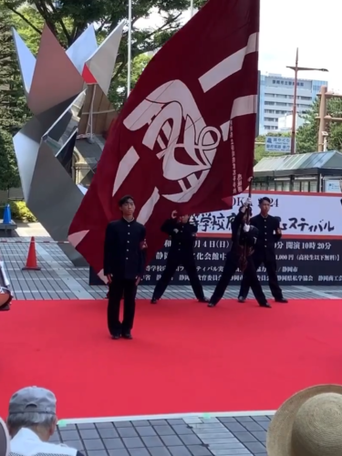 応援団 フェスティバルに参加 2024年8月5日 令和6年度、8月3、4日に行われた第13回高等学校応援団フェスティバルに応援団が参加しました。このフェスティバルは、普段脇役に徹する応援団が年に一度主役になる日、として静岡県外の高校も参加して開催されています。 ※撮影許可を得た顧問が撮影 初日は静岡市役所前の野外公演で、演舞と本校の応援を披露しました。 観客席からは、凛々しい演舞に手拍子、校歌では歌声が。応援ありがとうございました。