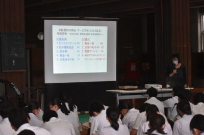 静岡県消費者教育出前講座を開催 2020年9月14日 静岡県中部県民生活センターの消費者教育講師をお迎えし、静岡県消費者教育出前講座を行いました。今回は3年生を対象に、消費者被害・事故に遭わないために悪質商法や契約トラブル、クレジットカードの取扱注意についてお話いただきました。通信販売も生徒たちには身近になってきているようで、被害に遭わないために、遭った時の対応など真剣に耳を傾けていました。